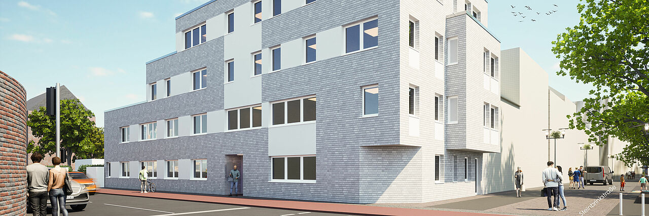 Das „Haus für Alleinerziehende“ soll so genannten „Ein-Eltern-Familien“ einerseits geeigneten und finanzierbaren Wohnraum bis zum Übergang in eine andere Lebenssituation zur Verfügung stellen und andererseits Raum zur Orientierung, zum Start ins Leben mit dem Kind und den Dialog und Austausch mit anderen Alleinerziehenden bieten. Räumlich verfügt der Standort an der Steinbrink-, Ecke Friedrichstraße über eine hervorragende Ausgangssituation hinsichtlich der Erreichbarkeit von Kindergärten, Spielplätzen und Schulen sowie der Versorgung mit Dingen des täglichen Bedarfs, da die Bahnhofstraße als Fußgängerzone in unmittelbarer, fußläufiger Nähe liegt.